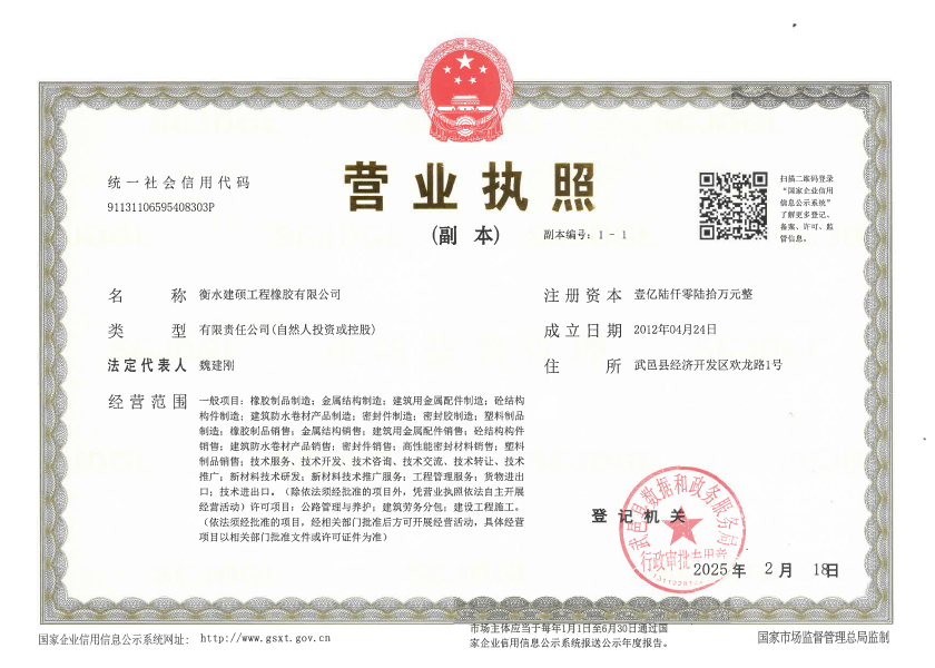 衡水建碩工程橡膠有限公司座落于衡水市濱湖新區(qū),占地面積50000平方米,注冊(cè)資金壹億零捌拾萬(wàn)元整,是生產(chǎn)橡膠支座、盆式支座、充氣芯模、伸縮裝置、止水帶的專(zhuān)業(yè)廠(chǎng)家。公司始建于九十年代,經(jīng)過(guò)近二十年的發(fā)展壯大,現(xiàn)有員工300多人,其中高級(jí)技術(shù)人員45人,高級(jí)技工103人。
